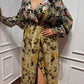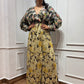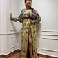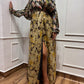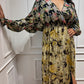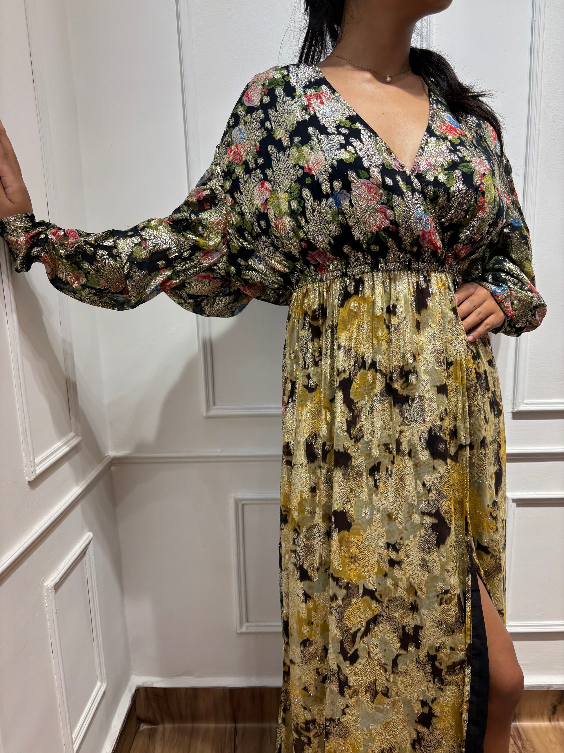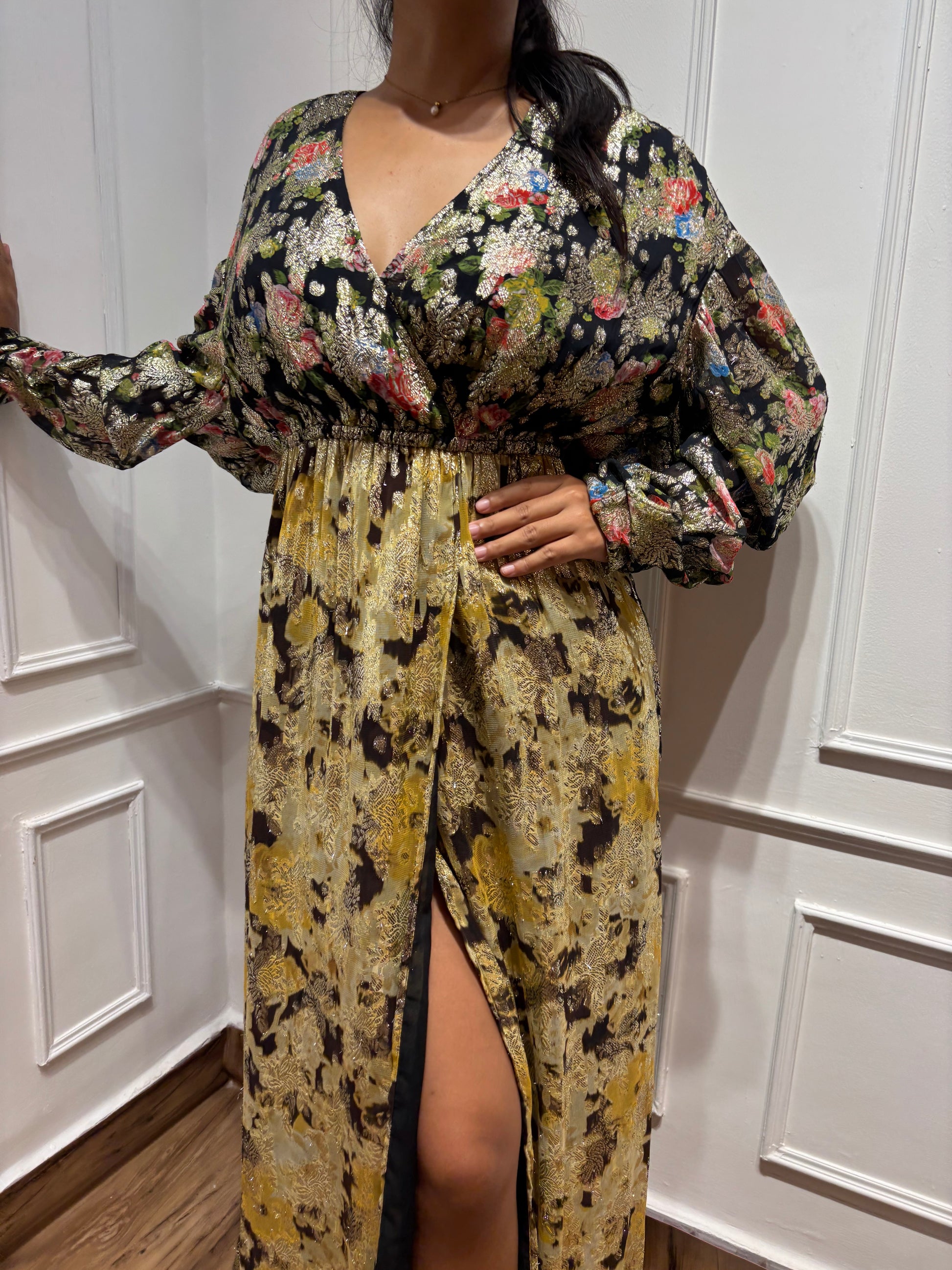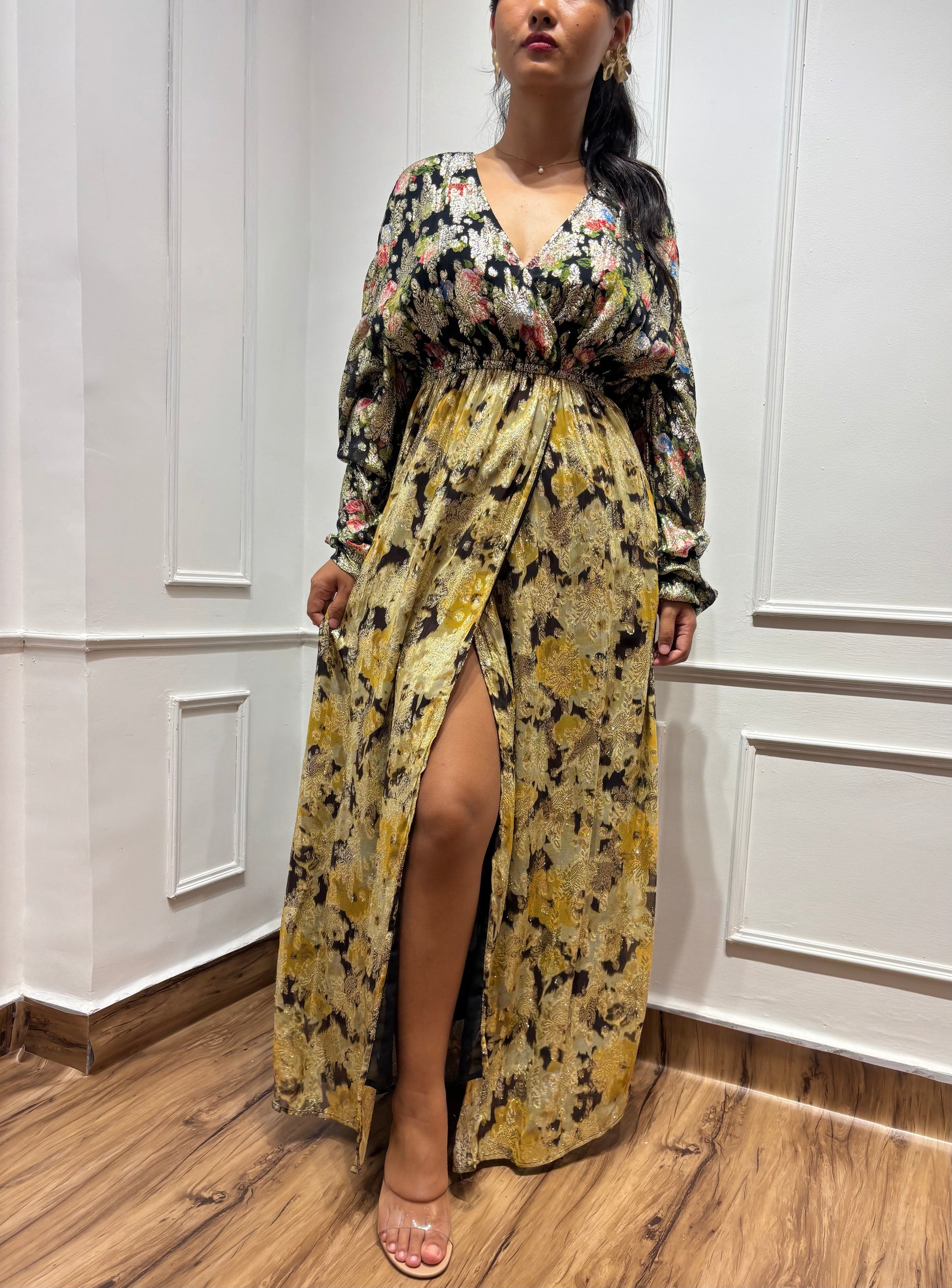 Black yellow colourblock gold shimmer Maxi dress with front slit