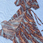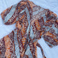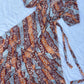 Abstract printed floral cotton wrap dress with ruffles and tie